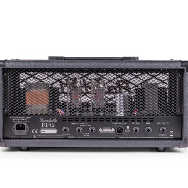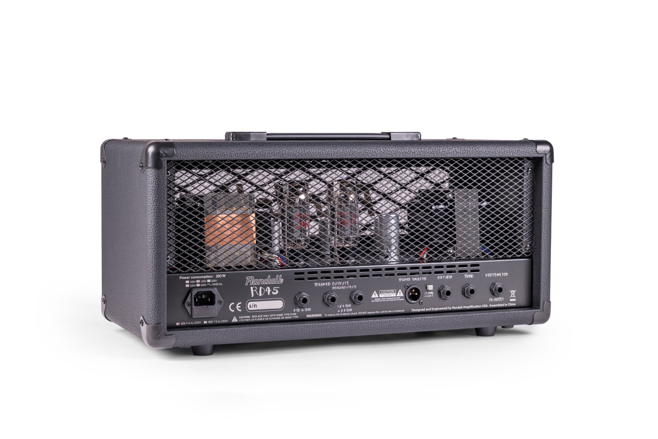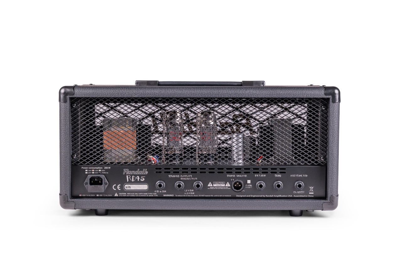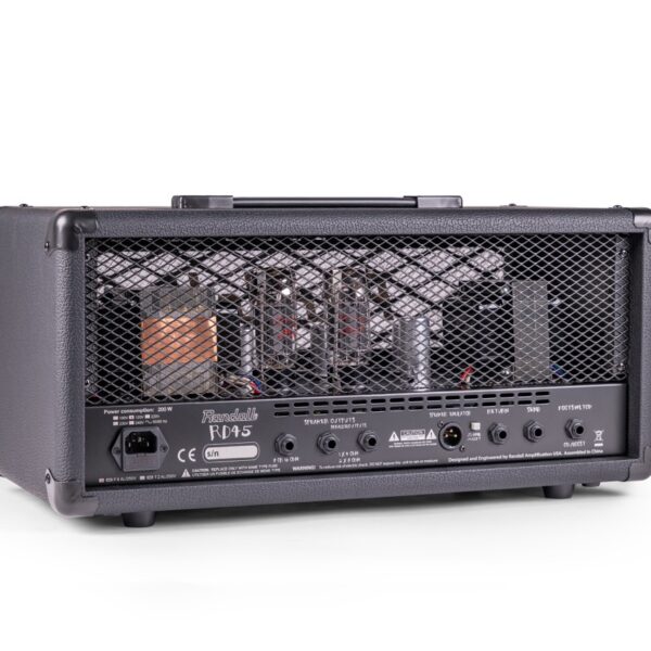 The RD45H Tube Amp Head is a 2-channel, 45-watt all-tube (12AX7 preamp with 6L6 or optional EL34 power tubes) high-gain amp head featuring a dedicated Boost mode, shared EQ with Presence control, and Class A discrete instrument-level effects loop. Professional connectivity includes a speaker-emulated XLR direct output, multiple speaker outputs with selectable 16/8/4-ohm impedance, and a 2-function footswitch is included.